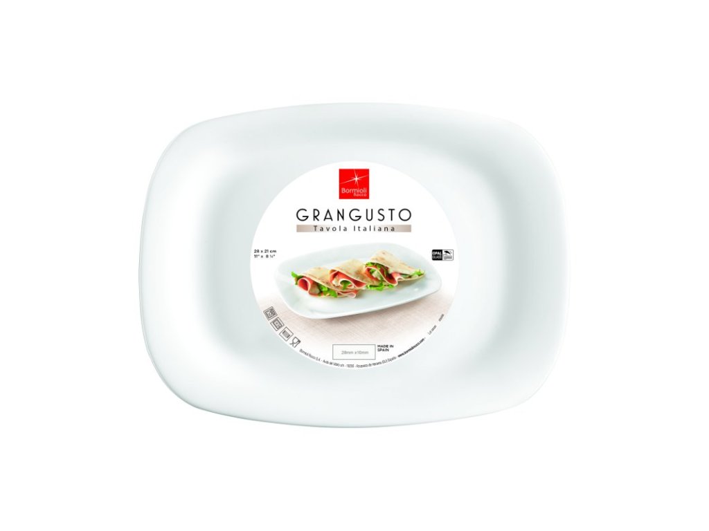 Pšeničná placka plněná sýrem, salámy a zeleninou či také marmeládou nebo tvarohem – to je piadina. Tato italská specialita pochází z regionu Romagna a podává se na speciálním talíři, který má ve své nabídce i výrobce Bormioli Rocco. Jednoduchý design talíře se bude vyjímat jak v moderních, tak i tradičních restauracích a opálové sklo vám zpříjemní pobyt v kuchyni. Výrobky kolekce Grangusto můžete mýt v myčce nádobí, ohřívat v mikrovlnné troubě i skladovat v lednici.Talíř 28 × 21 cm – PIADINA