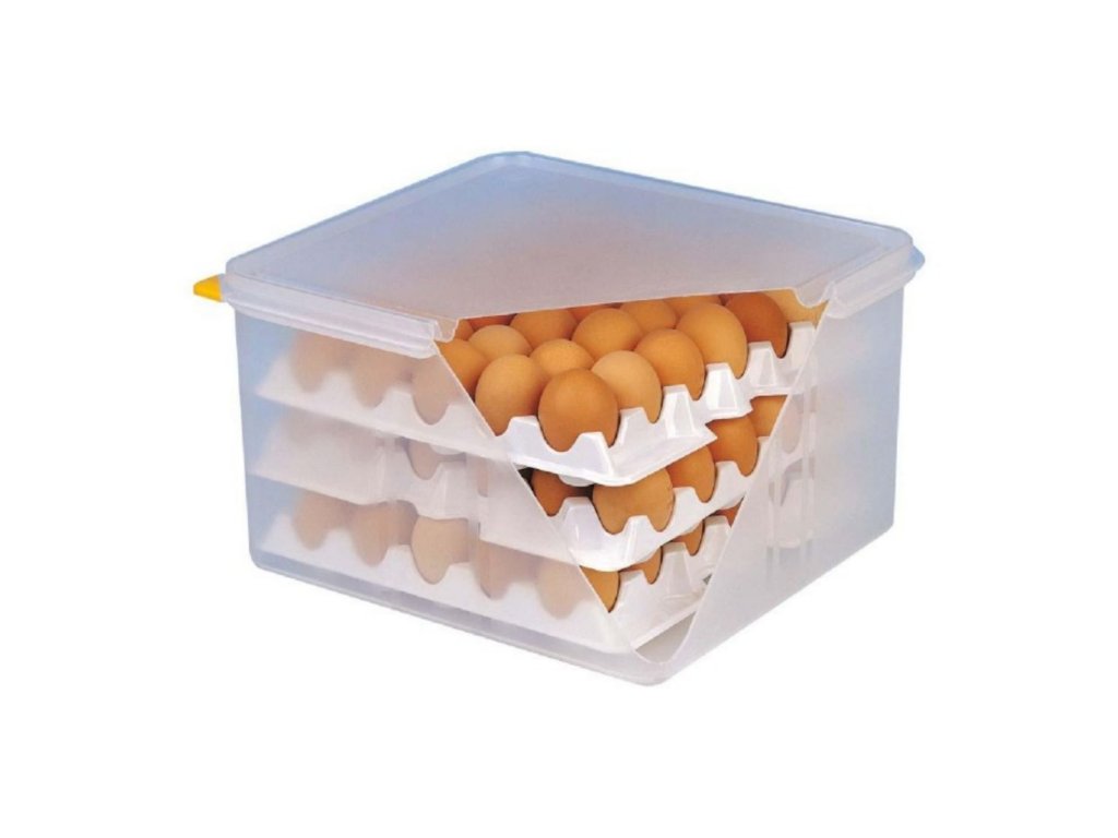 Profesionální box na vejce se vyrábí z odolného a pružného plastu. V sestavě této přepravky se nachází 4 plata na 30 vajec (tedy celkový počet vychází až na 120 ks vajíček) a je dodáván společně se 4 dalšími náhradními platy. Box i plata lze mýt v myčce na nádobí.Box na vejce
