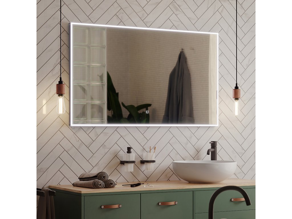 Zrcadlo do koupelny 100x70 cm s osvětlením, černým rámem, dotykový senzor je skvělým doplňkem do koupelny. Zrcadla do koupelny NIMCO vynikají kvalitním zpracováním a moderním designem. Osvětlení zajišťují výkonné LED diody po celém obvodu zrcadla zakryté 8 mm rámečkem. Konstrukce z hliníkového rámu 32x19 mm, sklo zrcadla o tloušťce 5 mm. Připojení 220-240 V. Zapínání / vypínání / ovládání dotykovým senzorem. Možnost nastavení barevné teploty svícení a intenzity svítivosti. Životnost LED diod je až 50 000 hodin. Ochrana IP 44. Součástí zrcadla je kabelová spojka, IP 44. Koupelnové podsvícené LED zrcadlo Životnost diod až 50 000 hodin Příkon W Možnost nastavení barevné teploty od 3000 - 6500 K Možnost nastavení intenzity svítivosti Zrcadlo má paměť, pamatuje si poslední nastavené hodnoty První možnost připojení přímo do elektrického obvodu Druhá možnost zapojení zrcadla na klasický kolébkový vypínač v koupelně podobně jako i jiná svítidla Lumen Černý rámDoplňkové parametry