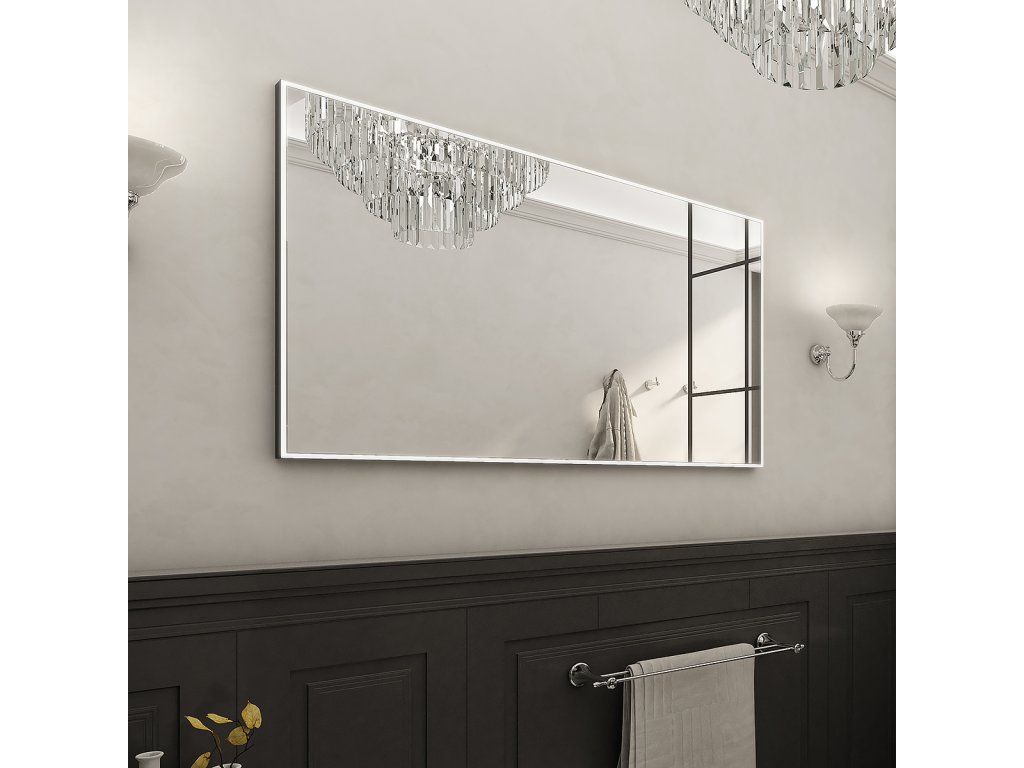 Zrcadlo do koupelny 1400x70 cm s osvětlením, černým rámem, dotykový senzor je skvělým doplňkem do koupelny. Zrcadla do koupelny NIMCO vynikají kvalitním zpracováním a moderním designem. Osvětlení zajišťují výkonné LED diody po celém obvodu zrcadla zakryté 8 mm rámečkem. Konstrukce z hliníkového rámu 32x19 mm, sklo zrcadla o tloušťce 5 mm. Připojení 220-240 V. Zapínání / vypínání / ovládání dotykovým senzorem. Možnost nastavení barevné teploty svícení a intenzity svítivosti. Životnost LED diod je až 50 000 hodin. Ochrana IP 44. Součástí zrcadla je kabelová spojka, IP 44. Koupelnové podsvícené LED zrcadlo Životnost diod až 50 000 hodin Příkon 44 W Možnost nastavení barevné teploty od 3000 - 6500 K Možnost nastavení intenzity svítivosti Zrcadlo má paměť, pamatuje si poslední nastavené hodnoty První možnost připojení přímo do elektrického obvodu Druhá možnost zapojení zrcadla na klasický kolébkový vypínač v koupelně podobně jako i jiná svítidla 3168 Lumen Černý rámDoplňkové parametry