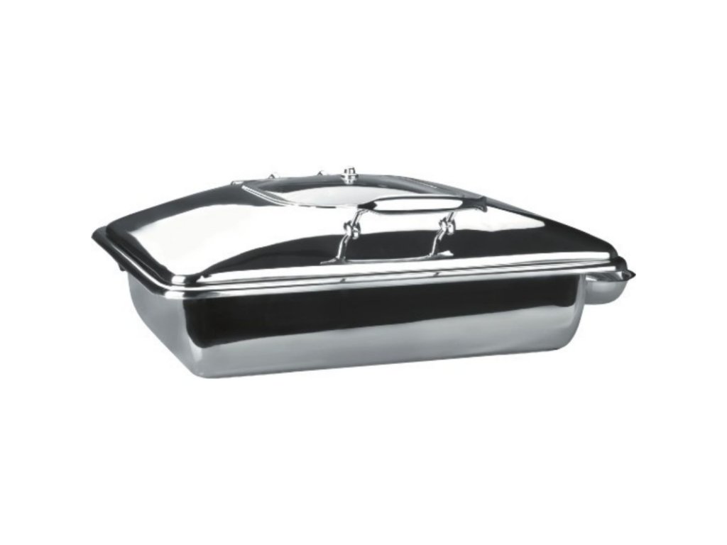 Chafing využijete pro podávání teplého jídla v rámci bufetů, rautů a jiných příležitostí. Víko se dá jednoduše vyjmout v poloze 90° pro snadnější čistění a víko se i samo pozvolně zavírá.Chafing Luxe GN 1/1, bez podstavce