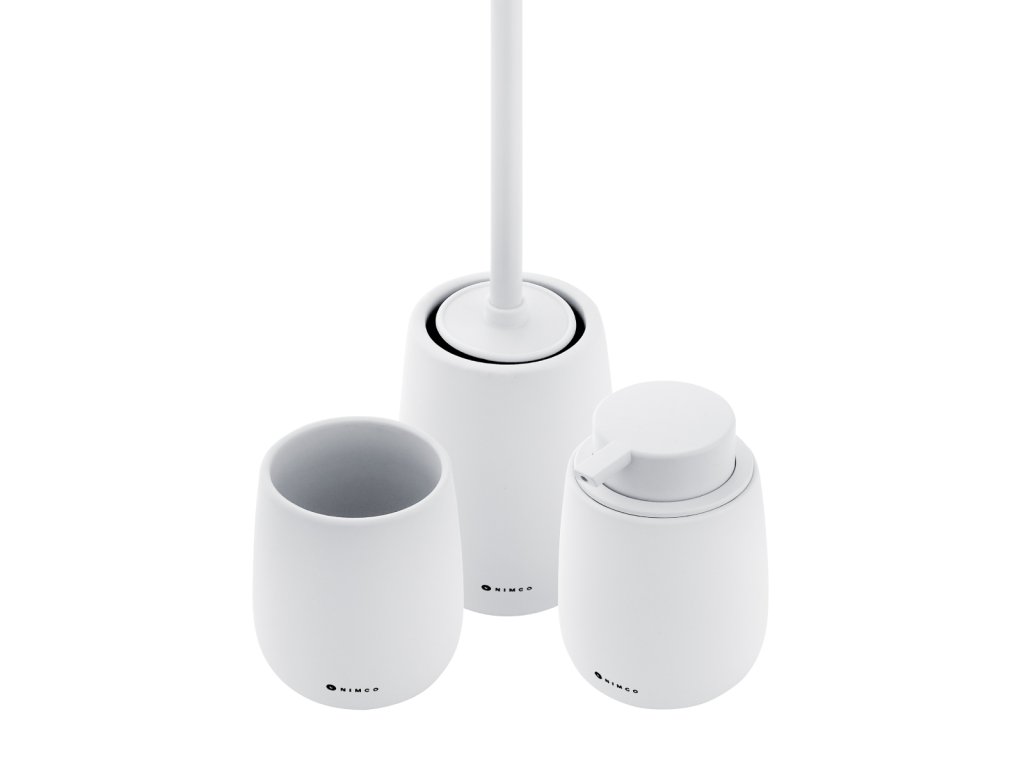 Sada doplňků do koupelny a WC obsahuje dávkovač tekutého mýdla, pohárek na zubní kartáčky a WC kartáč. Nádobky keramické bílé matné. Soft-touch povrch. Speciální dodatečná povrchová úprava. Povrch je hebký, příjemný na dotek. Sada obsahuje tyto koupelnové a WC doplňky: Dávkovač mýdla NIMCO Tabo Objem dávkovače mýdla 425 ml, pumpička plast, k postavení na umyvadlo. WC kartáč NIMCO Tabo WC štětka / toaletní WC kartáč na postavení vedle záchodové mísy. Rukojeť kartáče z nerez oceli se speciální dodatečnou povrchovou úpravou, štětiny černé barvy. Pohárek na kartáčky NIMCO Tabo Pohárek na kartáčky k postavení na umyvadlo. Pohárek může sloužit jako držák na kartáčky nebo sklenička na vodu. Sada koupelnových a WC doplňků NIMCO Tabo poskytuje tyto výhody: Příjemné na dotek Dostupné ve více barvách Jednotný design PraktickéDoplňkové parametry