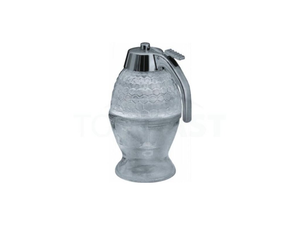 Skleněný dávkovač na med se šroubovacím závitem z plastu. Lze jej mýt v myčce nádobí, tudíž se jednoduše čistí a ulepenost od medu nehrozí.Dávkovač na med 0,2 l