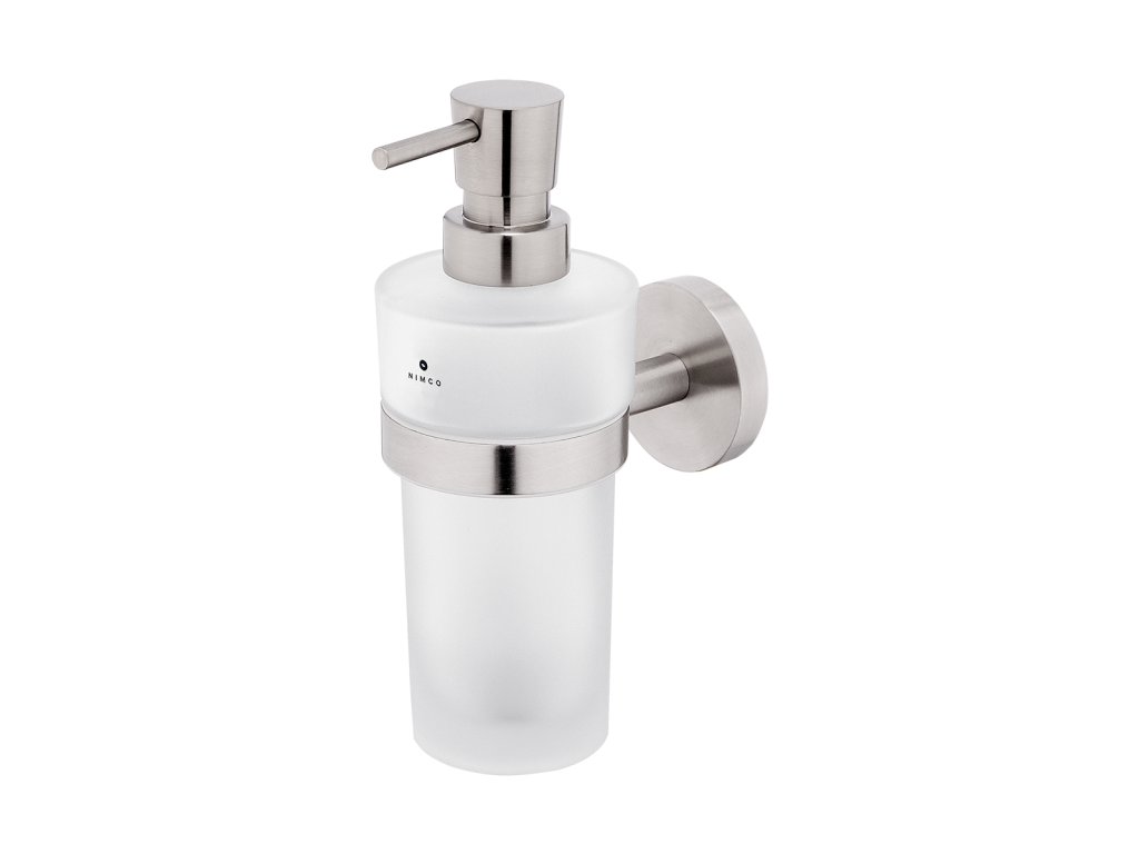 Dávkovač tekutého mýdla, pumpička broušená nerez Dávkovač tekutého mýdla. Úchyt i pumpička broušená nerez. Nádobka z matovaného skla, 250 ml.Doplňkové parametry
