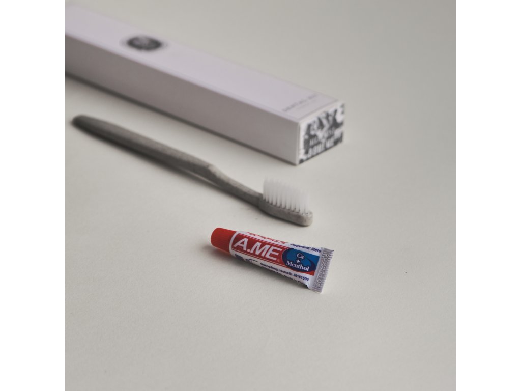 Dentální set Premium line Zůstaly všechny věci na čištění zubů doma na poličce? Vaši hosté se klidně mohou usmívat dál, protože tento dentální set je ve štychu rozhodně nenechá. Ekologický dentální set řady české značky Alchemist Bohéme obsahuje vše pro základní zubní hygienu. Najdete v něm kartáček a pastu pro čisté zuby i zářivý úsměv. Celý set najdete v ekologických obalech. Obal pasty obsahuje technologii d2W , která promění běžný plast na konci jeho životnosti na biologicky odbouratelný materiál, čímž urychlí jeho rozklad. Tělo kartáčku obsahuje drcenou slámu. Součásti setu jsou balené v biologicky rozložitelných obalech z kukuřičného škrobu. Krabička je z recyklovaného papíru z kontrolovaného ekologického zemědělství s certifikátem FSC. Používáním ekologických materiálů přispíváte k ochraně životního prostředí. Minimální objednávka: 2 50 ks / karton Doprava: ZDARMA u objednávek nad 5 000 Kč bez DPHDoplňkové parametry