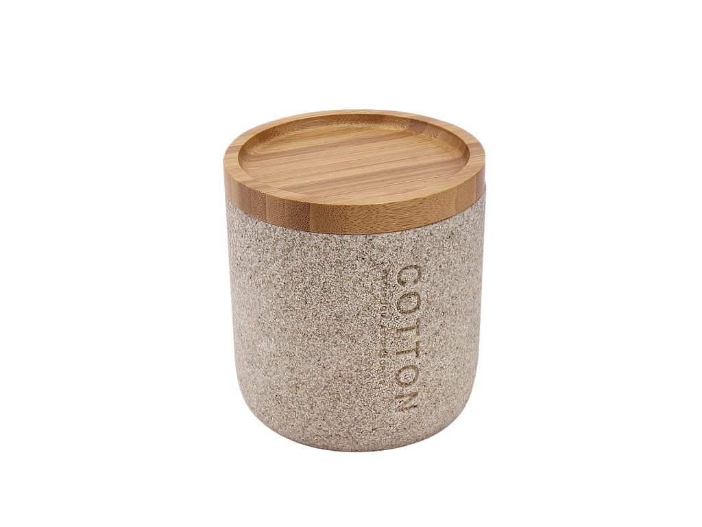 Dóza na kosmetické tampóny Dóza na kosmet. tampóny nebo jiné potřeby. Barva pískově béžová. Materiál polyresin, bambus. dřevo.Doplňkové parametry