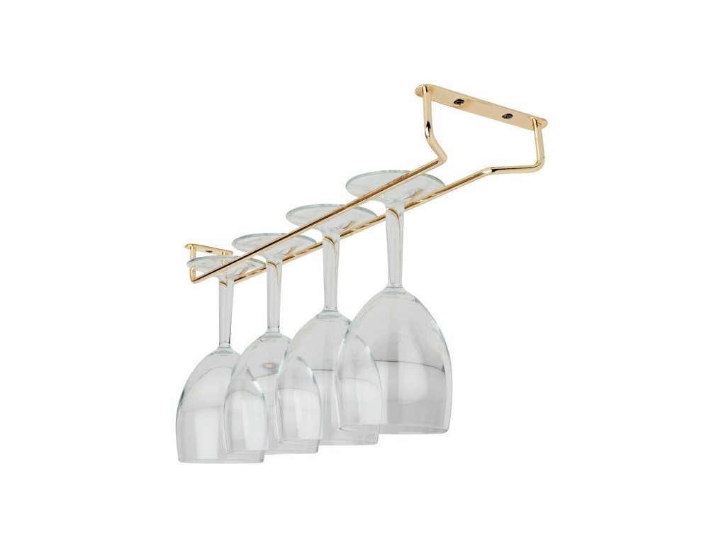 Praktický kousek do každého baru. Tento držák je určený pro sklenice s nožkou (například sklenice na víno). Vyrábí se z nerezové oceli potažené mosazí, což z něj činí elegantní kousek se zachováním veškeré jeho funkčností. Kromě toho, že zavěšené sklenice skvěle doplní celkový design, usnadní také práci barmanovi, neboť má potřebné nádobí vždy po ruce.Držák