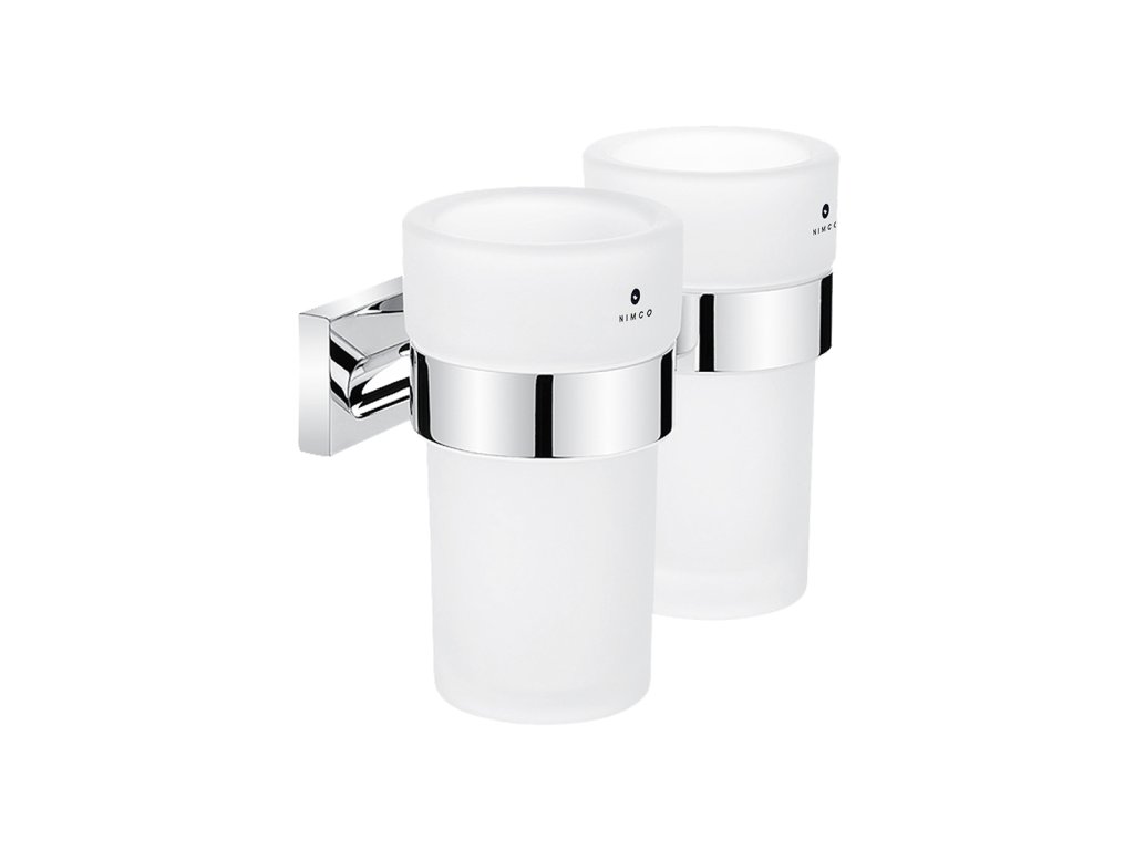 Držák sklenek dvojitý Držák sklenek dvojitý. Nádobky matované sklo. Úchyt mosaz s povrchovou úpravou chrom.Doplňkové parametry