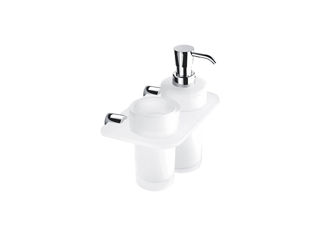 Dvojitý držák dávkovače a sklenky Držák sklenky a dávkovače, 250 ml. Úchyt plexiglass s matovaným povrchem.Doplňkové parametry
