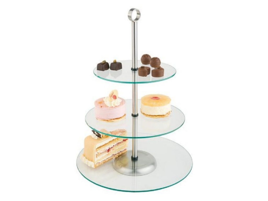 Vystavte své cukroví a zákusky na odiv na skleněném etažéru. Jeho elegantní design zdůrazní vaše cukrářské umění a stane se působivým doplňkem. Vzhledem připomíná porcelán, ale vyrábí se z melaminu, který není tak křehký a více vydrží.Etažér 40 cm