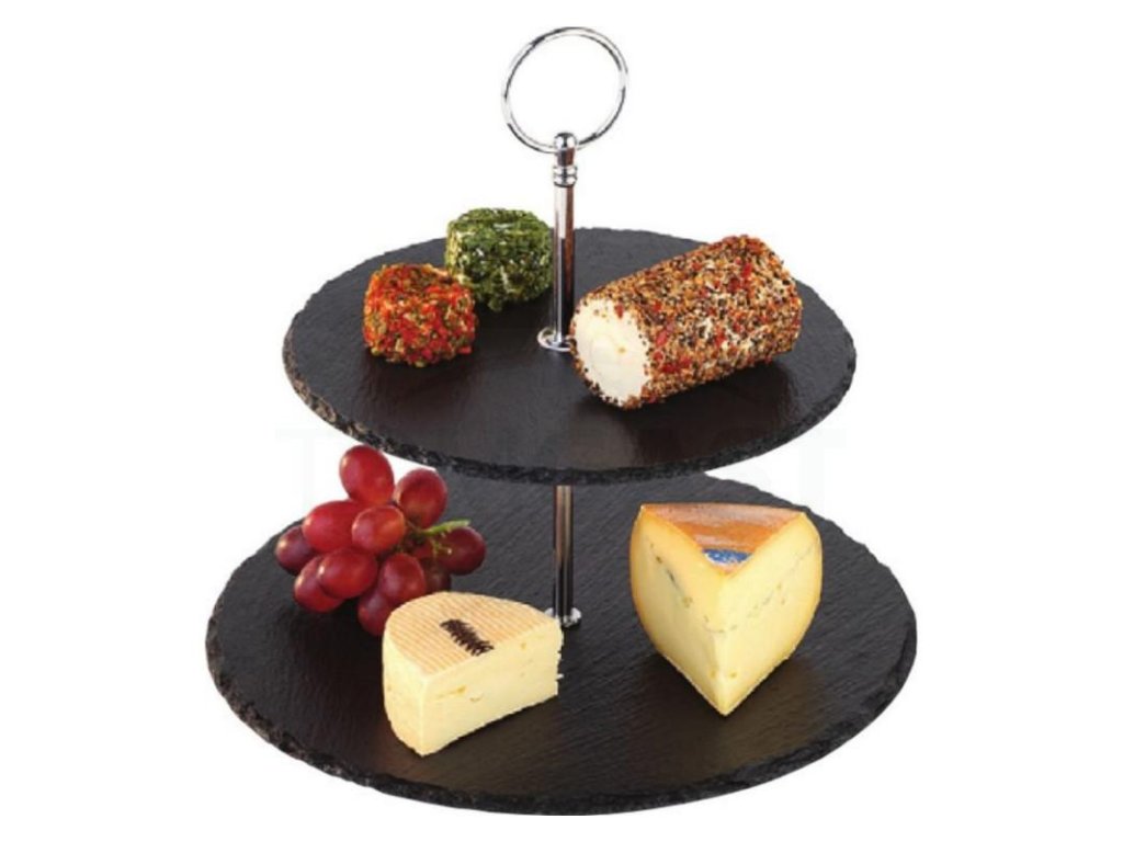 Vystavte své cukroví a zákusky na odiv na etažéru z břidlice. Jeho elegantní design zdůrazní vaše cukrářské umění a stane se působivým doplňkem. Takto naservírovaným dezertům zkrátka nikdo neodolá.Etažér břidlice 24 cm
