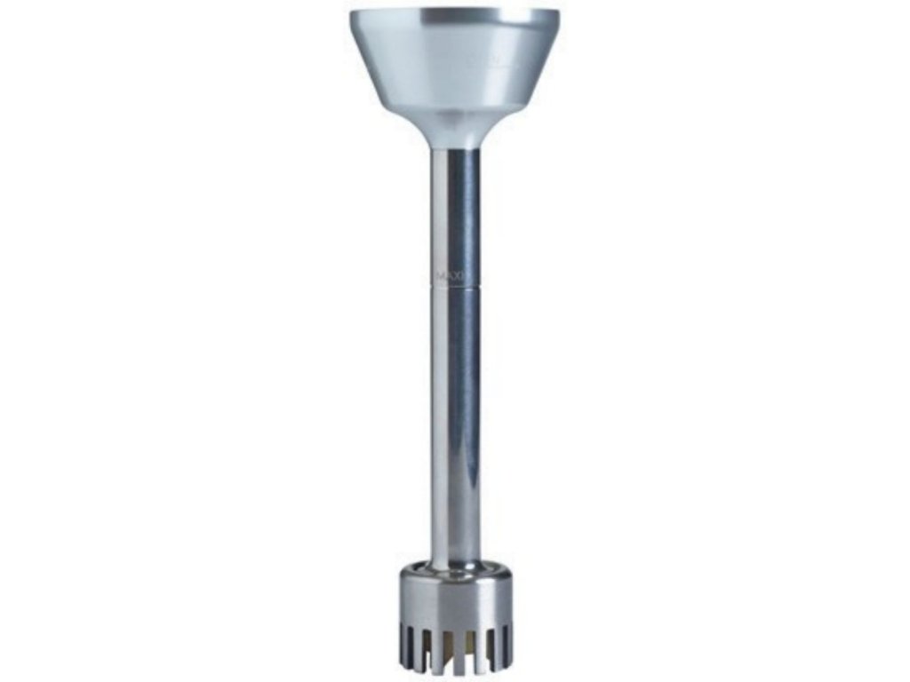 Mixovaný obsah se nasává, drtí a následně se vymrští skrz otvory ven. Tento účinný a výkonný pomocník rozmělní dokonce i rybí kosti a vlákna v zelenině. Jedná se o odnímatelný mixovací nástroj a zvonek ze 100% nerezové oceli určený pro model Dynamix Nomad. Patka i trojúhelníkové kladivo z nerezové oceli pokovené titanem, velmi robustní pro dlouhou životnost i při intenzivním používání.Foodmill násada
