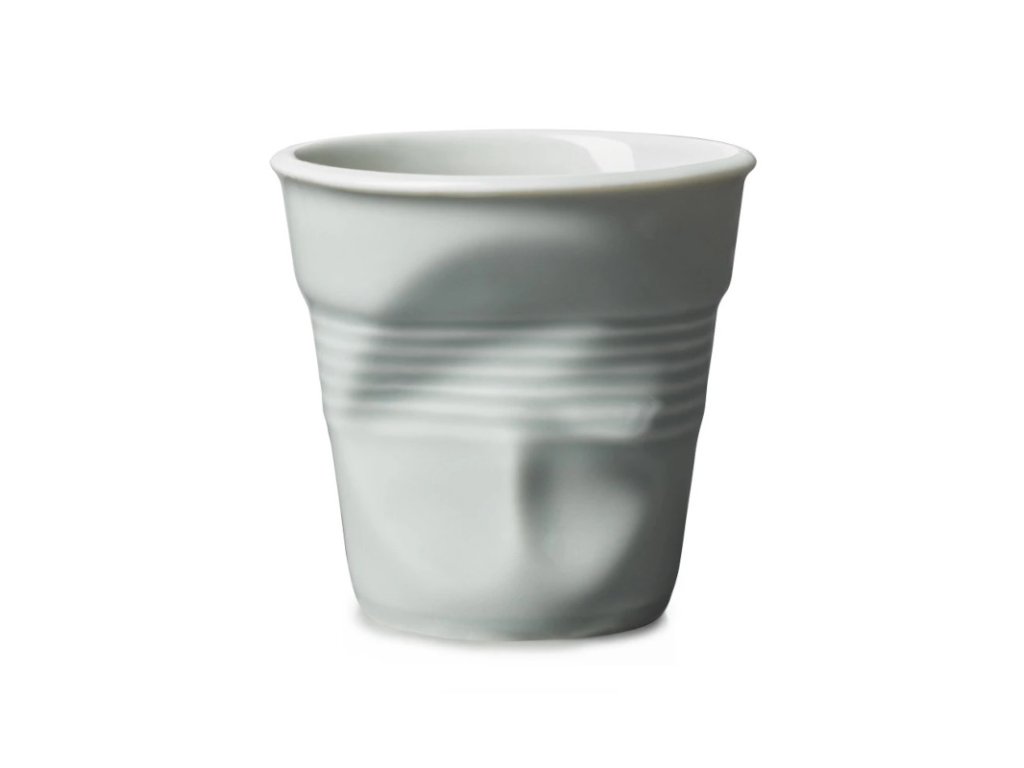 Smaltovaný Froissés pohárek patří mezi nejúspěšnější kousky porcelánu francouzského výrobce. Líbivá khaki barva působí přírodně a vkusně. Nevšední design zaujme každého na první pohled, a navíc své využití najde zkrátka všude. V pohárku upečete mini muffiny, suflé a další moučníky, připravíte zmrzku a samozřejmě perfektně poslouží při servírování horkých i studených nápojů. Navíc se jednoduše čistí a kamarádí i s myčkou. Tento zmačkaný pohárek už jen tak neskončí v koši, ale vkusně ozdobí domácnost i posezení u kávičky.Pohárek 180 ml, nebesky šedý