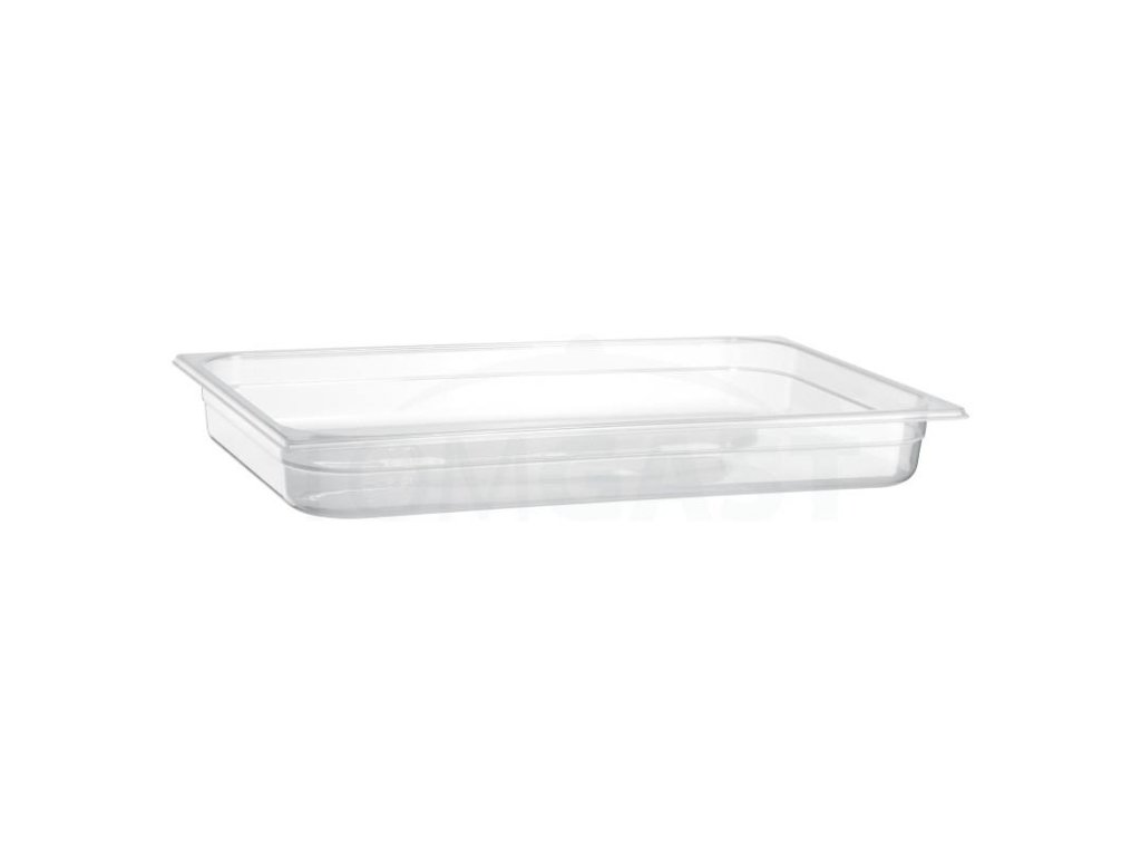 Tento produkt je pouze do vyprodání zásob! Skladujte, převážejte nebo servírujte jídlo z polypropylenové transparentní gastronádoby. Tento ekonomicky výhodný kousek splňuje vysoké nároky šéfkuchařům a vyrábí se shodně s normou EN631. Odolá teplotám od –40 °C až do 70 °C a udrží pokrmy dlouho čerstvé.Gastronádoba polypropylenová GN 1/1 065 mm