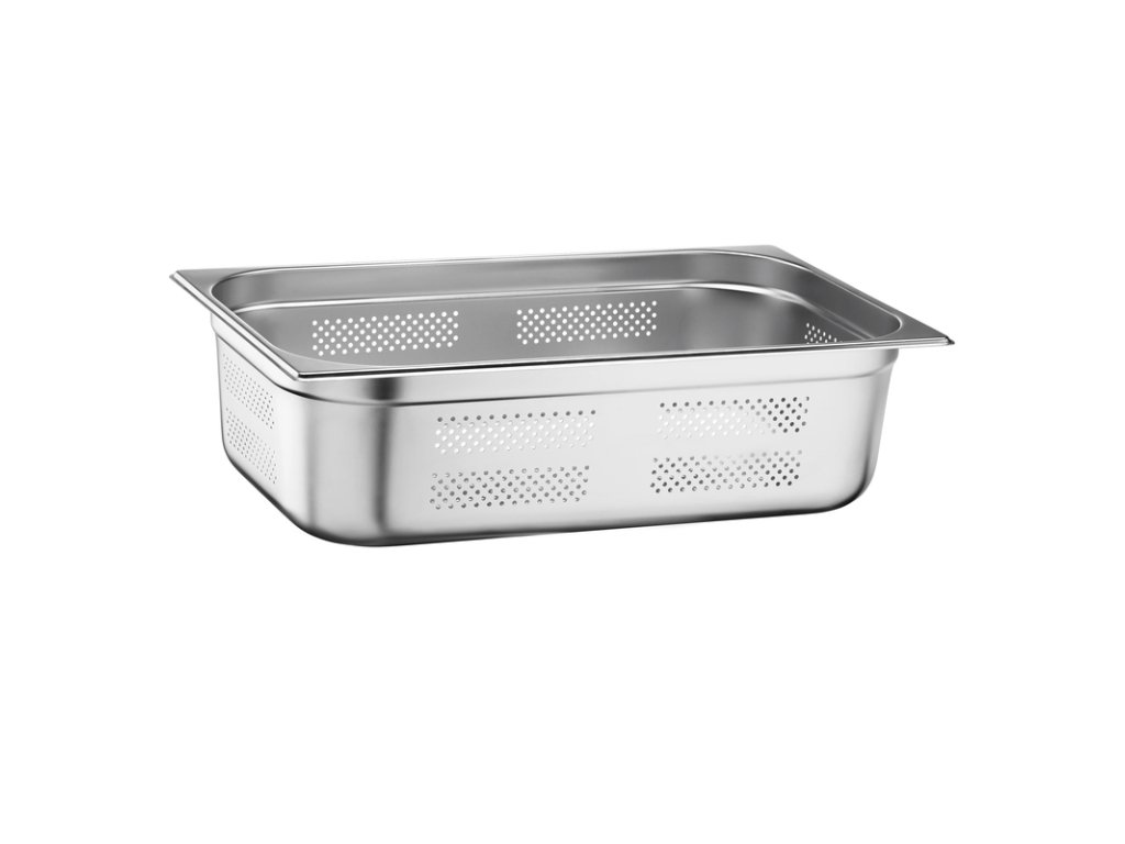 Děrovaná gastronádoba GN 2/3 z řady Standard je všestranným pomocníkem, kterého využijete při vaření, ohřevu i výdeji jídla. Díky specifické perforaci po stranách se hodí i k přípravě pokrmů v konvektomatu s teplotou až 200 °C. Vyrábí se z nerezové oceli 18/10 (18 % niklu, 10 % chromu), která garantuje lesk, vysokou odolnost i dlouhou životnost a dovoluje umýt gastronádobu v myčce.Gastronádoba Standard děrovaná GN 2/3 065 mm