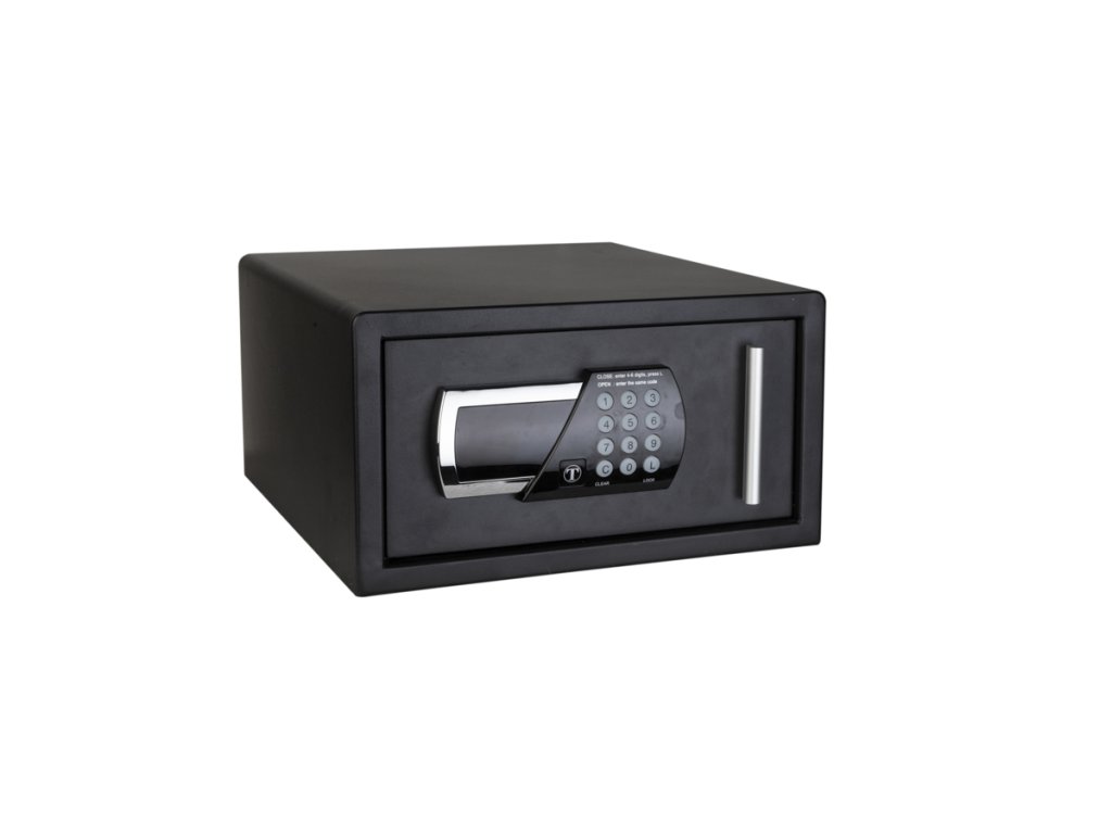 HOTELOVÝ TREZOR DS/2HN HOTELOVÝ TREZOR DS/2HN zajistí že, nepotřebujete hlídacího psa a ani smysly neustále v pozoru. Předejte starost o jakékoliv drobné cennosti do těch nejpovolanějších rukou. Hotelový trezor s LED displejem má vnitřní osvětlení. Je použitelný s digitálním kódem . Trezor vás potěší motorizovaným digitálním kombinačním zámkem , který je ovládaný vysoce výkonným elektronickým systémem, a dalšími parametry: Tloušťka dvířek: 5 mm Tloušťka těla: 2 mm Zásuvka posuvná na teleskopickém vedení Motorizovaný digitální kombinační zámek ovládaný vysoce výkonným elektronickým systémem Modře podsvícená klávesnice se rozsvítí při stisknutí libovolné klávesy Hostem programovatelný kód od 4 do 6 číslic Všechny funkce jsou označeny vysoce kontrastním 6místným LED displejem Možnost naprogramování hlavního kódu pro použití hotelovým managementem Klíč pro nouzové otevření (identický pro všechny trezory stejného hotelu) Auditní záznam posledních 100 událostí viditelných na displeji (otevření / uzavření) Napájení 4 x 1,5V alkalickými bateriemi Vnitřní koberec zajištěn Otvory pro upevnění zadní části a základny (2+4) Zašroubujte kotevní upevňovací šrouby jsou součástí dodávky Povrchová úprava černá prášková barva Minimální objednávka: 1 ks Doprava: ZDARMA u objednávek nad 5 000 Kč bez DPHDoplňkové parametry