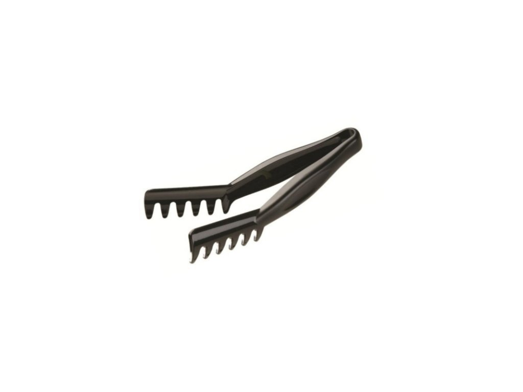 Servírovací kleště jsou ideálním pomocníkem pro vaše hosty i personál při nabírání pokrmů v rámci bufetů, švédských stolů a nebo na jiných událostech a sešlostech. Elegantní černý design působí vkusně a přizpůsobí se každému interiéru.Kleště polykarbonátové 21 cm, černé