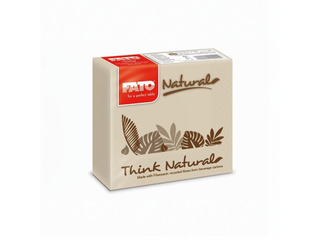Koktejlové ubrousky FATO NATURAL Oživte své koktejlové večery s koktejlovými ubrousky FATO NATURAL! Tyto 2-vrstvé ubrousky ke koktejlům jsou ideálním doplňkem pro hotelový bar, lobby či pokoj pro hosty. Neměly by chybět na žádném z míst, kde se servírují studené či horké nápoje .Stylový potisk think / drink obalu dodává dodá ubrouskům přirozený a nadčasový vzhled. S koktejlovkami FATO NATURAL se servírování nápojů stane profesionálním zážitkem. Přidejte do svého arzenálu tyto ekologické ubrousky a užijte si stylové a bezstarostné koktejlové chvíle! Materiál ECONATURAL ECONATURAL je inovativní řadou FIBERPACK®, suroviny získané z renovovaných celulózových vláken, která jsou obsažena v nápojových kartonech. Řada vysoce kvalitních výrobků s výjimečnými vlastnostmi, které se vyznačují charakteristickým hnědým zabarvením a jsou vyráběny použitím nebělených celulózových vláken. Všechny výrobky řady ECONATURAL jsou certifikovány ekoznačkou. Minimální objednávka : 12 ksDoplňkové parametry