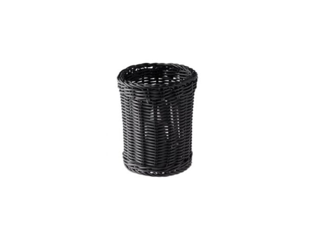 Polyratanový košík na příbory představuje praktického, ale zároveň vkusného pomocníka v každém gastronomickém podniku. Je snadno omyvatelný a poskytuje parádní prostor pro umístění příborů. Upoutá každé oko.Košík na příbory 12 cm, černý