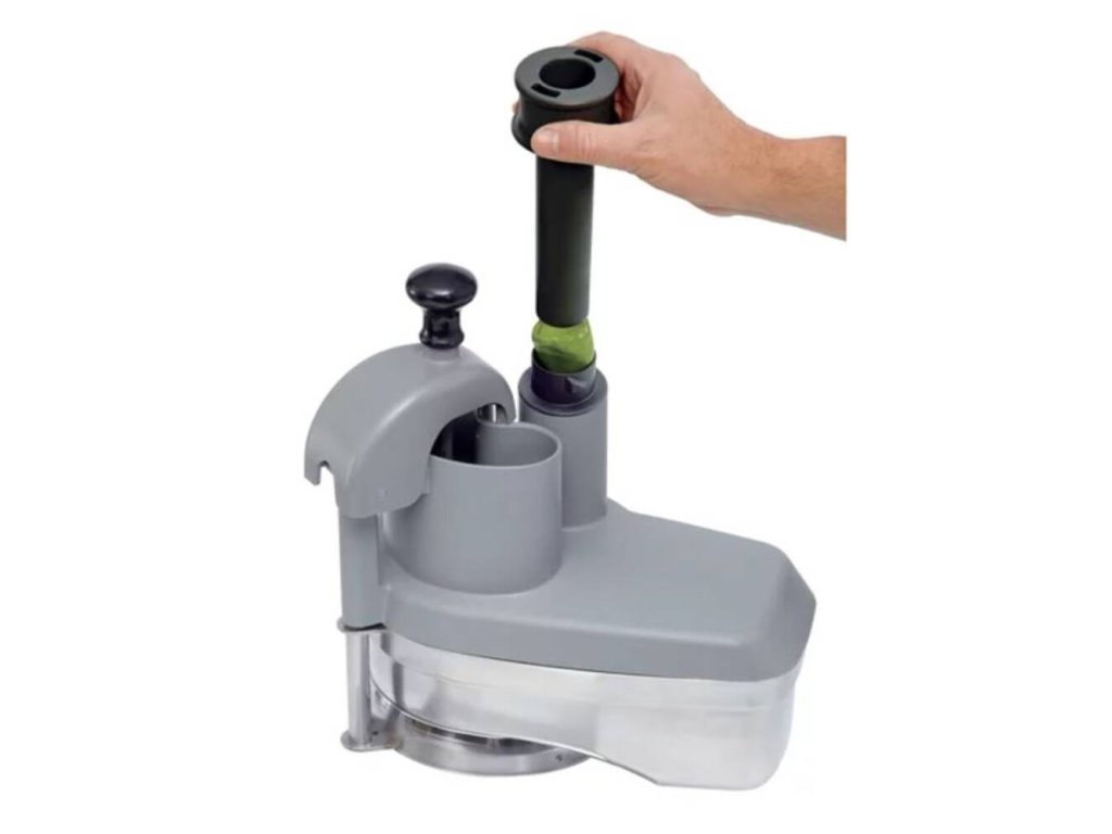 - 1× pěchovadlo Exactitube o průměru 39 mm – na krájení drobných plodů jako jsou papričky, nakládané okurky, suché salámy, chřest, raná cibulka, banány, jahody, hrozny