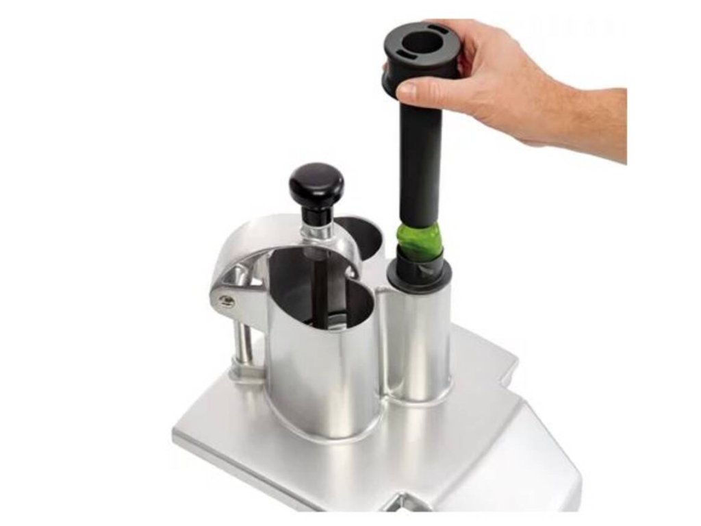 - 1× pěchovadlo Exactitube o průměru 39 mm – na krájení drobných plodů jako jsou papričky, nakládané okurky, suché salámy, chřest, raná cibulka, banány, jahody, hrozny