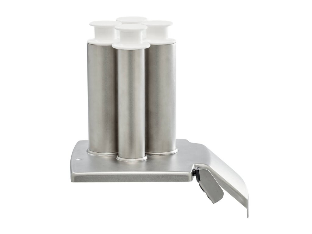 - 1× integrovaný tubus o průměru 59 mm – tubus se používá pro nepřerušované krájení dlouhých nebo křehkých druhů zeleniny nebo ovoce (okurky, cuketa, ředkev, banán aj.)