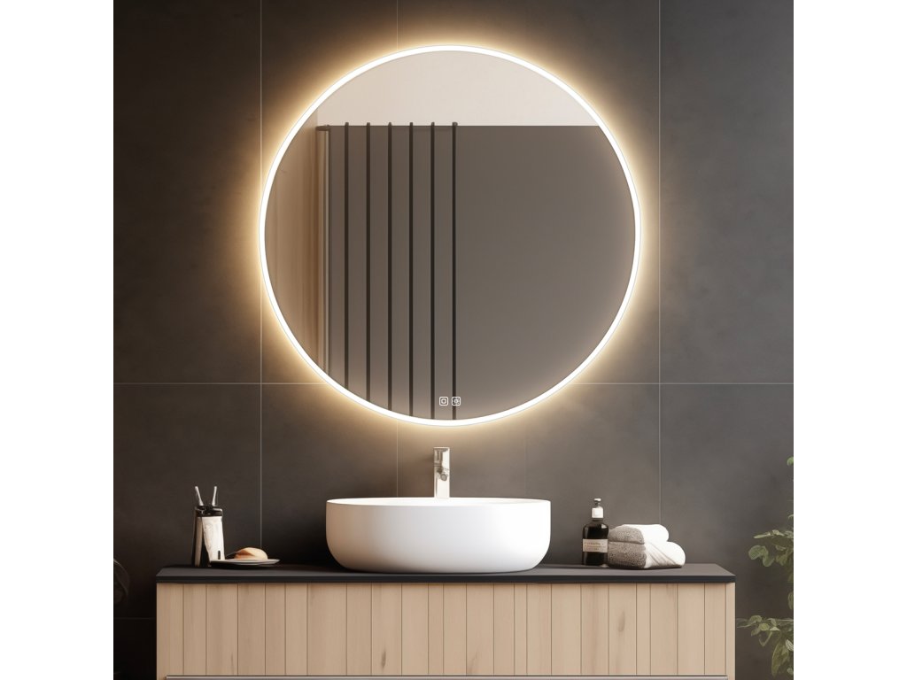 Kulaté zrcadlo do koupelny 80 cm s osvětlením, dotykový spínač je skvělým doplňkem do koupelny. Zrcadla do koupelny NIMCO vynikají kvalitním zpracováním a moderním designem. Svícení za použití akrylátového skla, plexiglass. Konstrukce pro uchycení zrcadla je z hliníkového rámu 32x19 mm, sklo zrcadla má tloušťku 5 mm. Průměr zrcadla 800 mm. Led pásky jsou ukryté v PVC tubě za sklem zrcadla. Světlo prochází skrz sklo a odráží se po celém obvodu zrcadla, tím vytváří i zajímavý světelný efekt na stěně. Připojení 220-240 V. Ochrana IP 44. Zapínání / vypínání / ovládání je pomocí dotykového senzoru s pamětí. Možnost nastavení barevné teploty svícení a intenzity svítivosti. LED čipy mají vysoký výkon. Životnost LED diod je až 50 000 hodin. Součástí zrcadla je kabelová spojka, IP 44. Koupelnové podsvícené KULATÉ LED zrcadlo Životnost diod až 50 000 hodin Příkon 28 W Možnost nastavení barevné teploty bílé od 3000 - 6500 K Možnost nastavení intenzity svítivosti Zrcadlo má paměť, pamatuje si poslední nastavené hodnoty První možnost připojení přímo do elektrického obvodu Druhá možnost zapojení zrcadla na klasický kolébkový vypínač v koupelně podobně jako i jiná svítidla 2016 LumenDoplňkové parametry