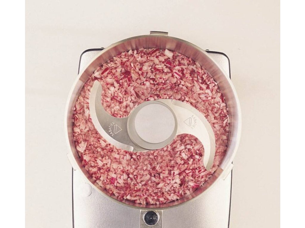 - nůž s rovným ostřím – vhodný pro přípravu emulzí, pěn, pomazánek, pro jemné i hrubé rozsekání masa a zeleniny