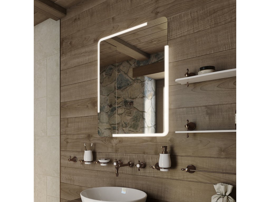 Zrcadlo do koupelny 60x80 cm s osvětlením v rozích, dotykový spínač je skvělým doplňkem do koupelny. Zrcadla do koupelny NIMCO vynikají kvalitním zpracováním a moderním designem. Svícení za použití akrylátového skla plexiglass. Konstrukce je z hliníkového rámu 32x19 mm, sklo zrcadla o tloušťce 5 mm. Připojení 220-240 V. Zapínání / vypínání / ovládání dotykovým senzorem s pamětí. Možnost nastavení barevné teploty svícení a intenzity svítivosti. Životnost LED diod je až 50 000 hodin. Ochrana IP 44. Koupelnové podsvícené LED zrcadlo Životnost diod až 50 000 hodin Možnost nastavení barevné teploty od 3000 - 6500 K Možnost nastavení intenzity svítivosti Zrcadlo má paměť, pamatuje si poslední nastavené hodnoty První možnost připojení přímo do elektrického obvodu Druhá možnost zapojení zrcadla na klasický kolébkový vypínač v koupelně podobně jako i jiná svítidla Příkon 32 W 2304 LumenDoplňkové parametry