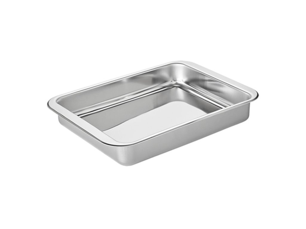 Elegantní obdélníkový plech vyrobený z kvalitní nerezové oceli je ideální na různé pečené pokrmy. Disponuje vestavěnými rukojeťmi. Odolává běžným teplotám v troubě. Představuje skvělou volbu pro podávání jídla přímo na stůl.Plech na pečení, nerez 35 cm