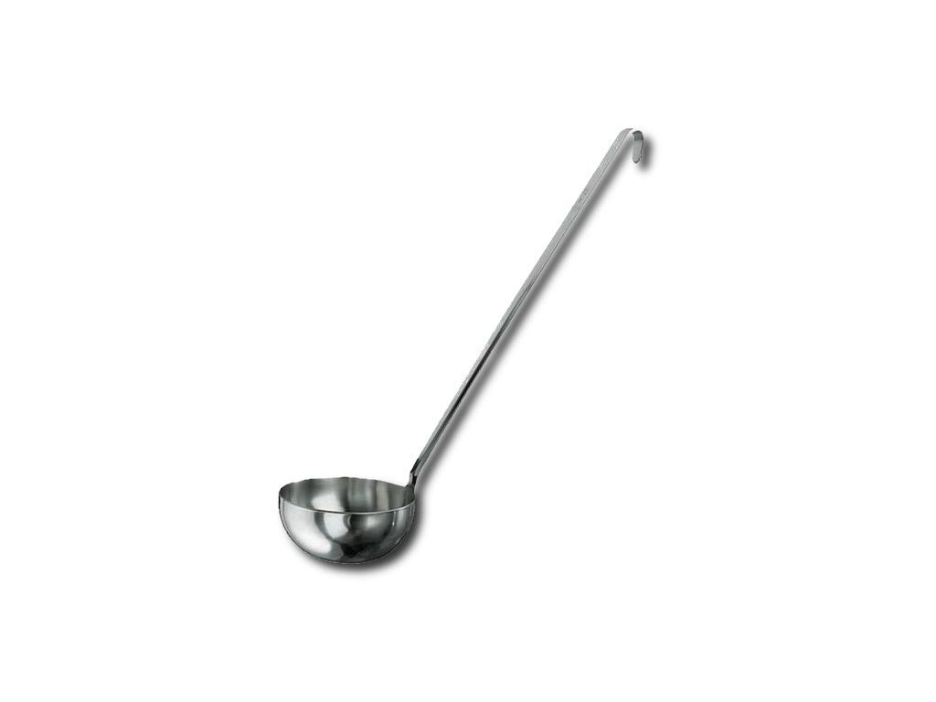 Kvalitní naběračka vyrobená z jednoho kusu odolné nerezové oceli dlouho vydrží a můžete ji mýt i v myčce nádobí. Díky závěsnému háčku ji lze umístit i na zeď.Naběračka 38 cm