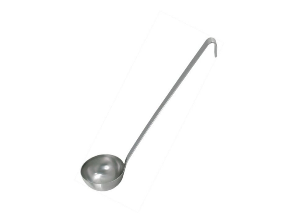 Naběračka vyrobená z jednoho kusu kvalitní nerezové oceli. Nemá tedy žádné spáry. Díky závěsnému háčku ji lze pověsit na hrnec i třeba zeď.Naběračka monoblok 33 cm