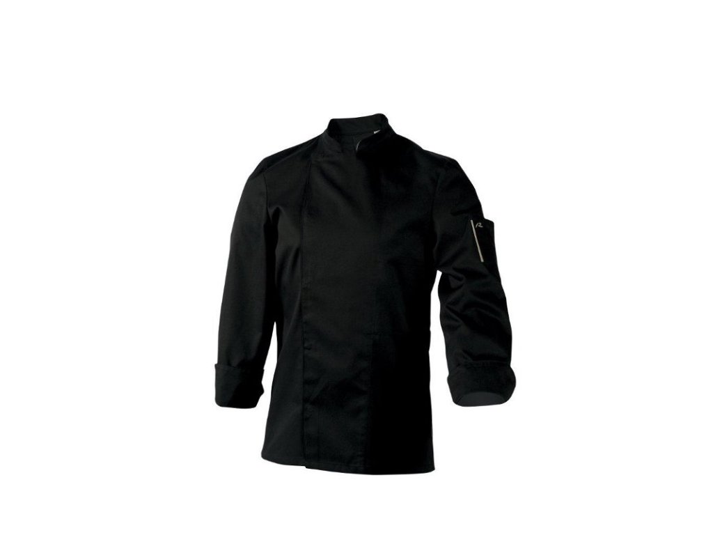 Moderní rondon s dlouhým rukávem v klasickém, univerzálním střihu. Díky pohodlné a zároveň lehké, prodyšné látce a nachází uplatnění v restauracích, hotelech a banketních sálech. Najdete na něm svinovací manžety a kapsu na levém rukávu pro pero, která má ozdobné kontrastní zakončení.Rondon, černý, dl. rukáv, M