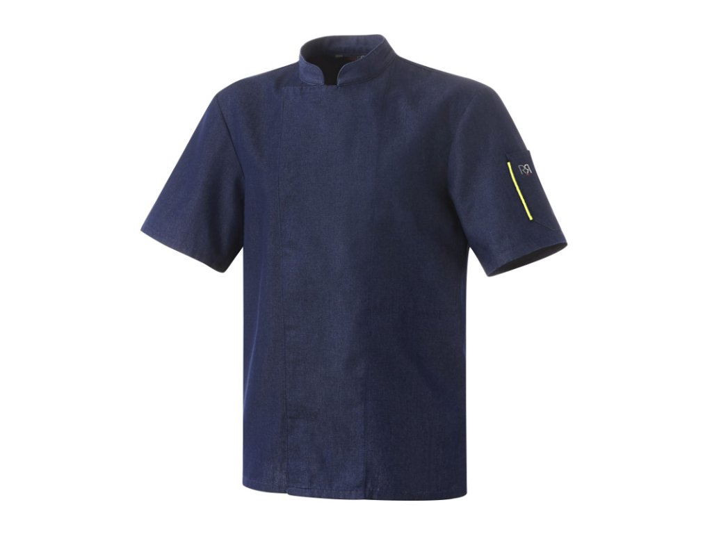 Moderní rondon s krátkým rukávem v klasickém, univerzálním střihu. Díky pohodlné a zároveň lehké, prodyšné látce a nachází uplatnění v restauracích, hotelech a banketních sálech. Najdete na něm svinovací manžety a kapsu na levém rukávu pro pero, která má ozdobné kontrastní zakončení.Rondon, denim jeans, kr. rukáv, S
