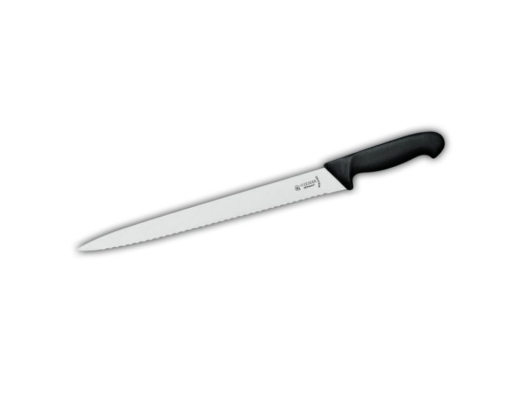 Nůž na dorty od značky Giesser vás ohromí svou kvalitou. Jeho čepel je tvrdá a na okraji má zoubky, které se poperou i s pevnou krustou, aniž by nůž nějak klouzal. Rukojeť se vyrábí ze špičkového plastu, a proto v ruce neklouže a pohodlně se drží. Po nakrájení ho můžete dát do myčky, ale kvůli kvůli ochraně zoubků doporučujeme umývat ručně.Nůž na dorty 31 cm
