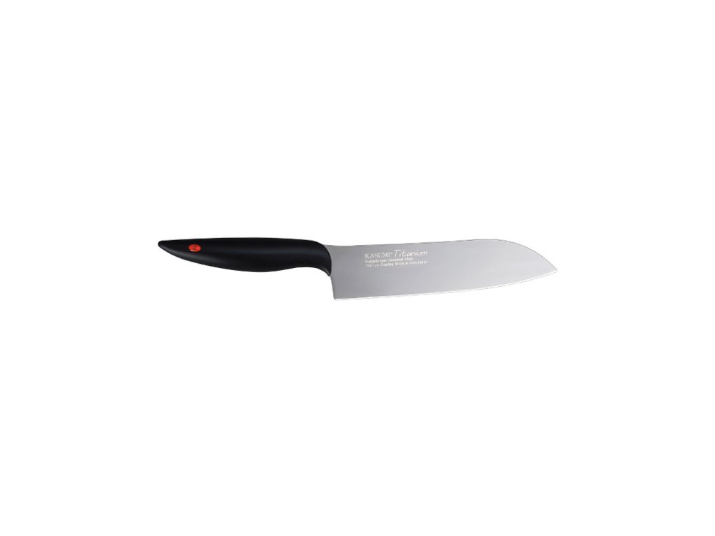 Nůž se vyrábí z molybdeno-vanadové oceli potažené titanovou vrstvou, která chrání a zároveň zpevňuje ostří. Odolá chemikáliím i kyselinám a rukojeť vydrží až do teploty 90 °C.Nůž Santoku 18 cm