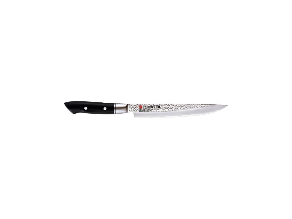 Nůž z kolekce VG10 je perfektní ukázkou japonského řemeslného umění. Speciálně zdobené ostří ze špičkové nerezové oceli společně s vytvarovanou rukojetí vytváří unikátní spojení, které se dá označit za mistrovské dílo.Nůž univerzální 20 cm