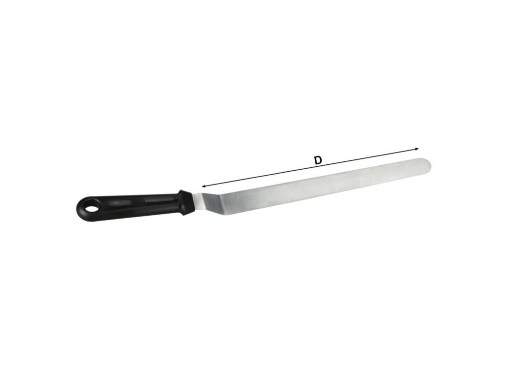 Pečete dorty a potřebujete rozetřít krém? Pak oceníte roztírací paletu, se kterou to díky jejímu speciálnímu tvaru půjde jako po másle. S její délkou pohodlně rozetřete krém po celé ploše dezertu a usnadní vám to i plastová rukojeť, která se pohodlně drží.Paleta roztírací prohnutá 30 cm