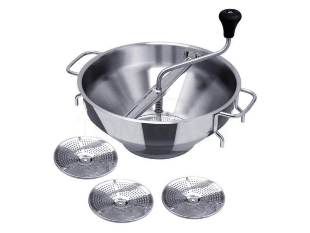 Profesionální pasírka se třemi vyměnitelnými disky.Pasírka Jumbo na hrnec 32 cm