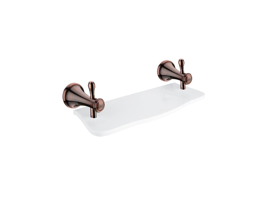 Police, 30 cm Police z bílého umělého kamene. Délka 30 cm. Úchyty mosaz s povrchovou úpravou staroměď.