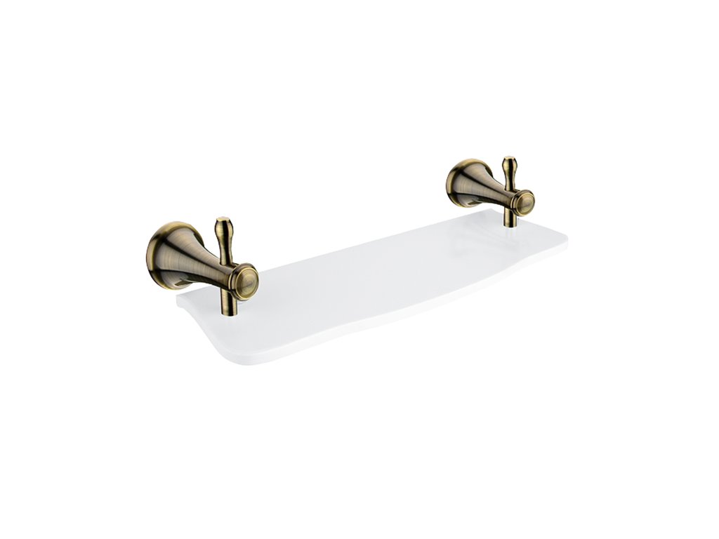 Police, 40 cm Police z bílého umělého kamene. Délka 40 cm. Úchyty mosaz s povrchovou úpravou staromosaz.
