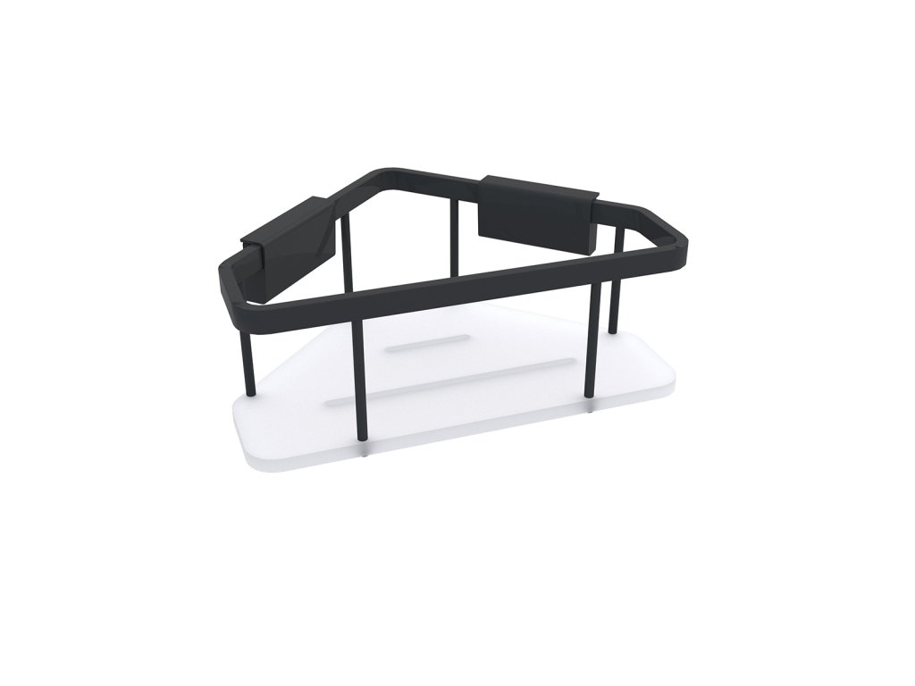 Černá rohová polička z akrylového skla s matně černou kovovou ohrádkou určená do sprchy nebo k vaně. Minimalistický design rohové poličky umocňují použité materiály a vyfrézované otvory pro lepší odkapávání vody. Odkládací plocha poličky je vyrobena z matně bílého akrylového skla o tloušťce 8 mm. Nosnost poličky 3 kg. Montáž lepením, vrtáním. Lepidlo MAMUT není součástí balení výrobku. Lze je dokoupit pod artiklovým číslem 35003TU.Doplňkové parametry