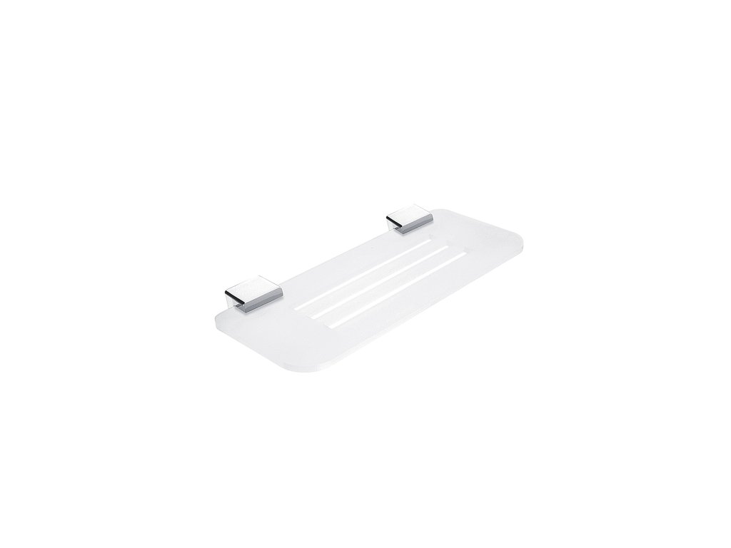 Police IXI, 30 cm Police s frézovanými otvory. Materiál plexiglass s matovaným povrchem. Délka 30 cm. Úchyty mosaz / chrom.