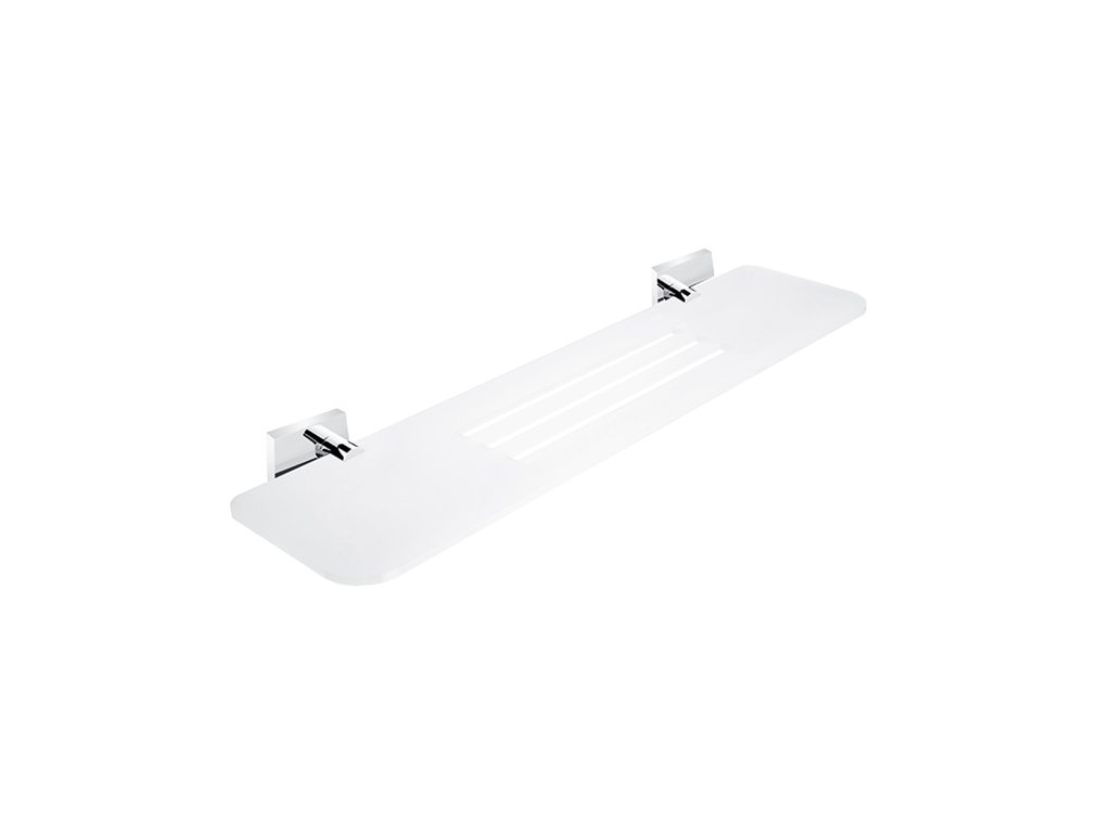 Police IXI, 50 cm Police plexiglass s frézovanými otvory. Úchyty mosaz / chrom. Délka 50 cm.
