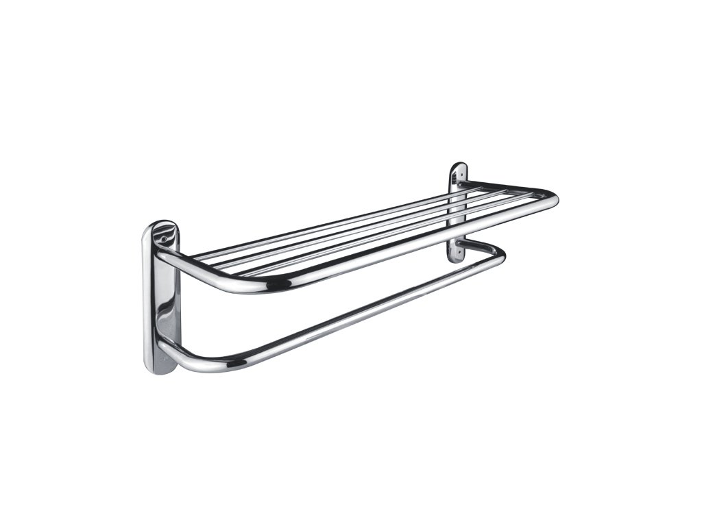 Police a zároveň sušák na ručníky z kovových trubek v úpravě chrom. Poskládané suché ručníky hravě uložíte na polici a zároveň máte k dispozici sušák na vlhký ručník nebo osušku, který je součástí police. Materiál nerez, povrchová úprava leštěný nerez-lesk/chrom, šířka 62 cm. Police na ručníky bude koupelně slušet mnohem více, když zvolíte i další doplňky z nabídky koupelnových a WC doplňků NIMCO.Doplňkové parametry
