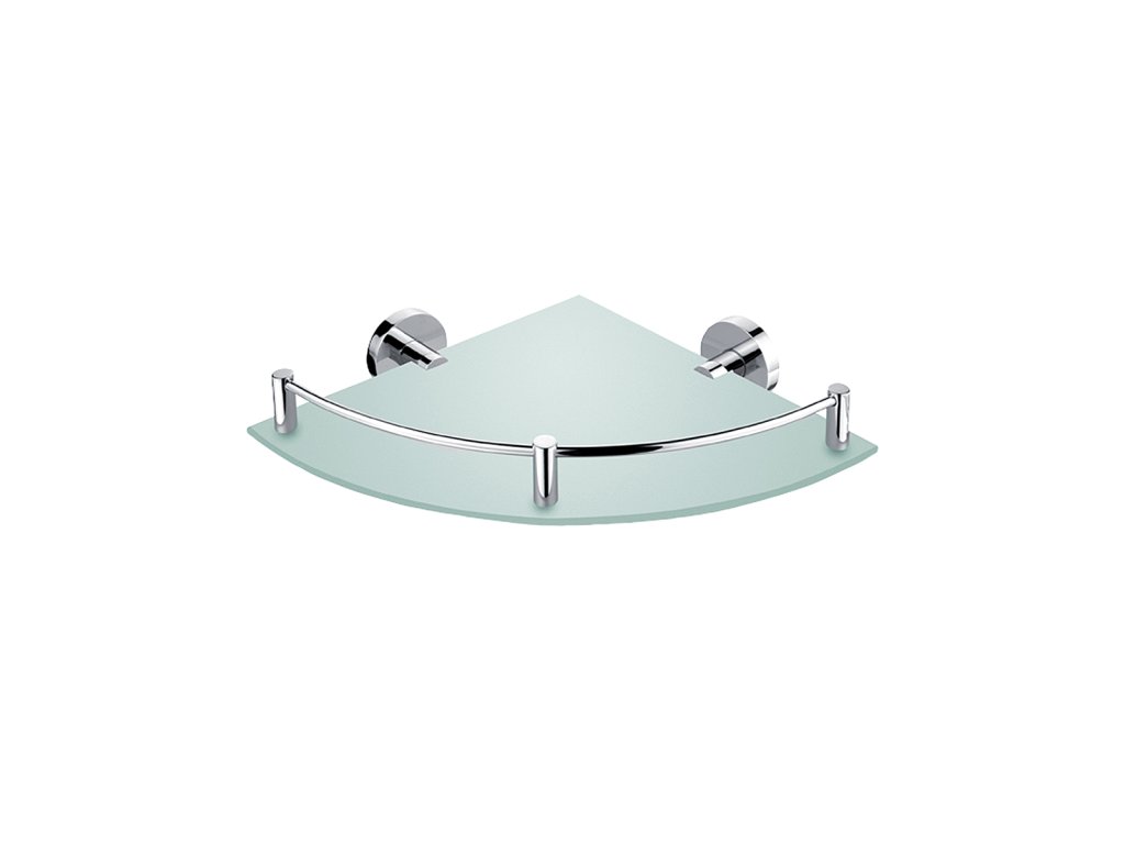 Police rohová s ohrádkou Police rohová s ohrádkou ve skle. Sklo matované. Poloměr skla 25 cm.