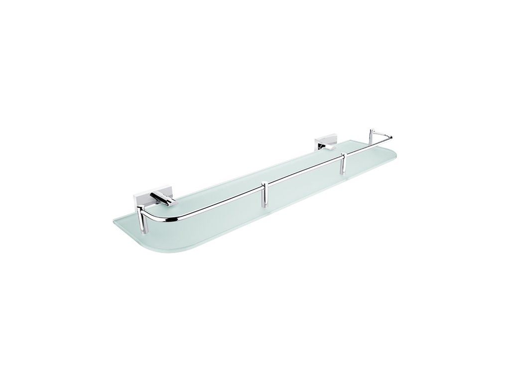 Police s ohrádkou, 50 cm Police s ohrádkou z matovaného skla. Délka 50 cm. Úchyty mosaz s povrchovou úpravou chrom.