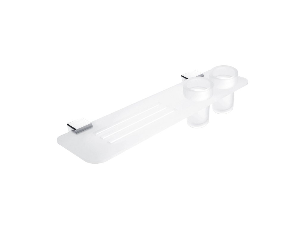 Police se sklenkami na kartáčky Police s frézovanými otvory s matovanými sklenkami. Délka matované police plexiglas 50 cm.