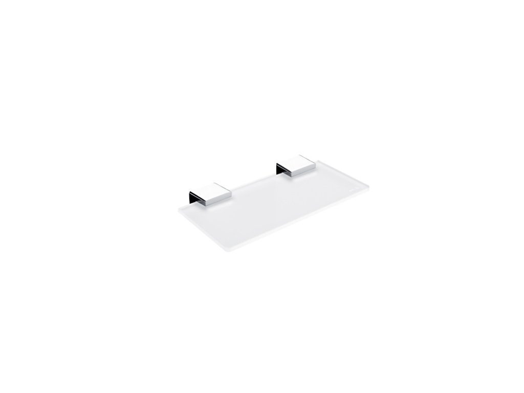 Police vhodná pro MOBIL, 20 cm Police. Sklo extra čiré matované. Rozměr 20x11 cm. Tloušťka skla 8 mm! Úchyt police mosaz / chrom.