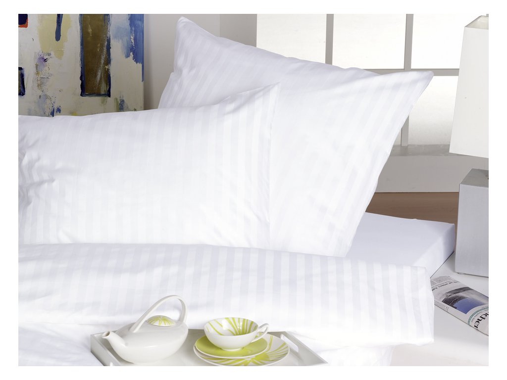 Ložní prádlo ve vkusném designu podélných proužků. Příjemná kvalita z prvotřídního bavlněného saténu, prstencová příze, česaná, mercerovaná. U bočního hotelového uzávěru vedou proužky příčně. (V nabídce také: podélné proužky 3 mm, 4 mm, 10 mm, 30 mm)
